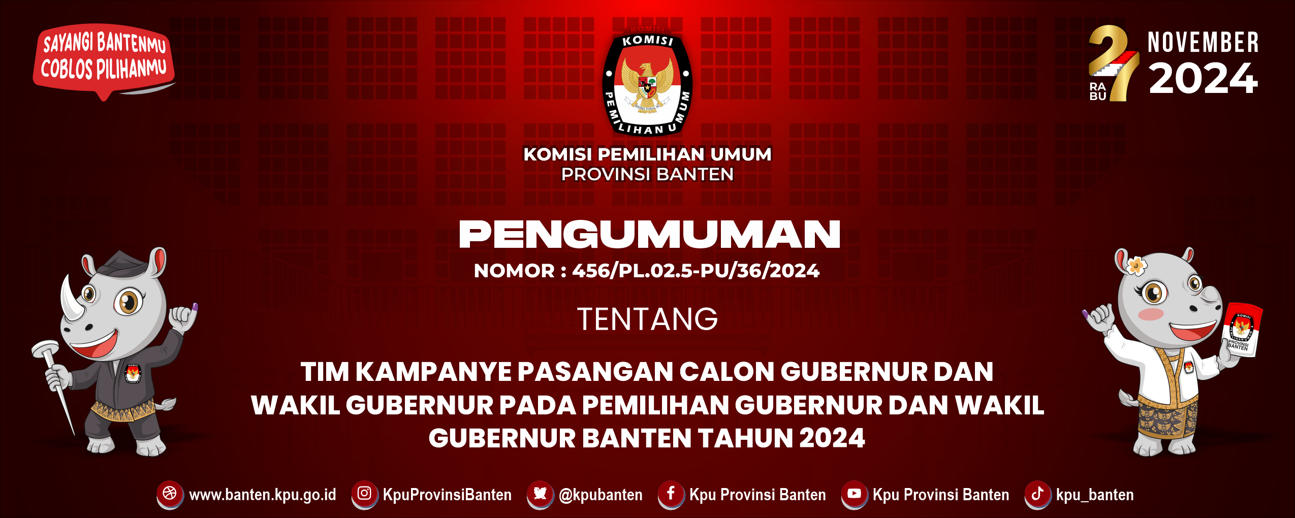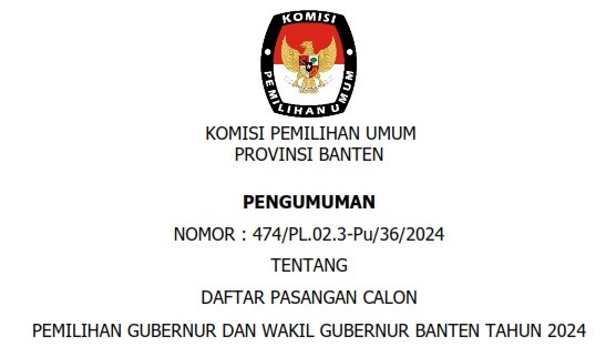 Pengumuman Daftar Pasangan Calon Pemilihan Gubernur dan Wakil Gubernur Banten Tahun 2024
