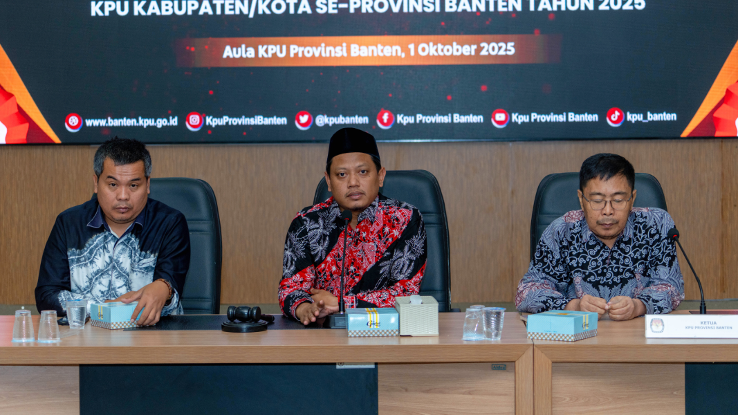 Serang — KPU Provinsi Banten menggelar Rapat Koordinasi Monitoring dan Evaluasi (Monev) Keterbukaan Informasi Badan Publik KPU Kabupaten/Kota se-Provinsi Banten di Aula KPU Provinsi Banten pada Rabu, 1 Oktober 2025.