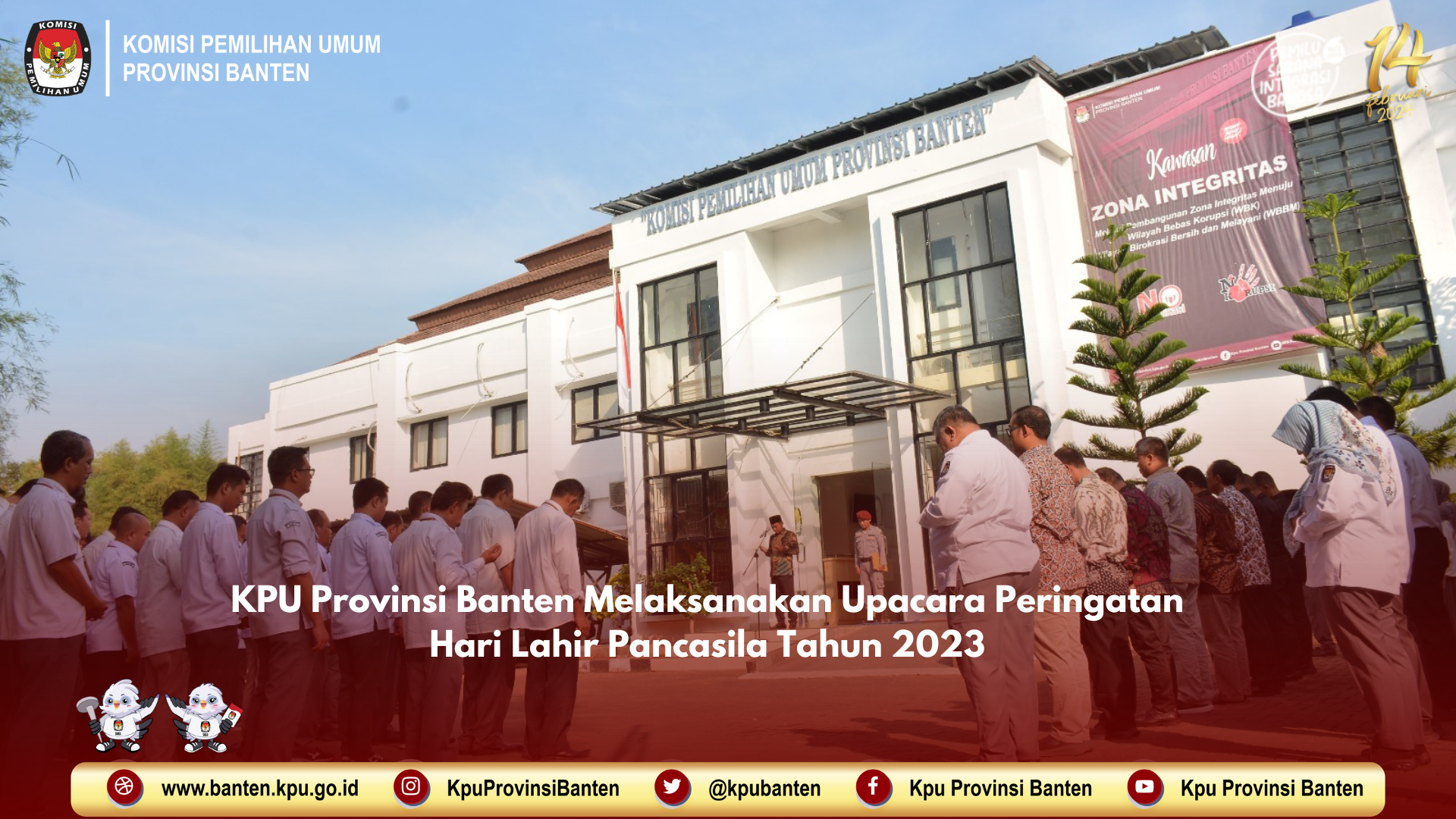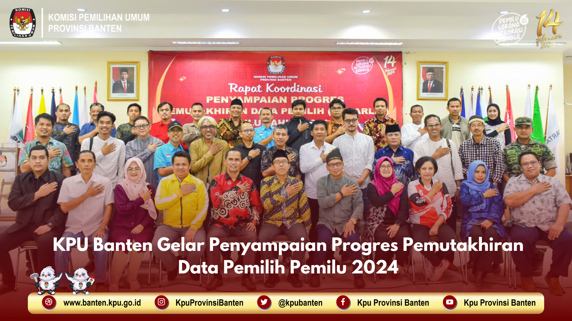 KPU Provinsi Banten mengadakan Rapat Koordinasi Penyampaian Progres Pemutakhiran Data Pemilih (Mutarlih) Pemilu Tahun 2024 bersama dengan Bawaslu Provinsi Banten, Pimpinan Partai Politik, Bakal Calon DPD RI, dan Instansi Terkait Provinsi Banten di Aula Utama Kantor KPU Provinsi Banten Jum'at 19 Mei 2023. Tampak hadir Ketua, Anggota dan Sekretaris KPU Provinsi Banten dan jajaran Sekretariat KPU Banten.