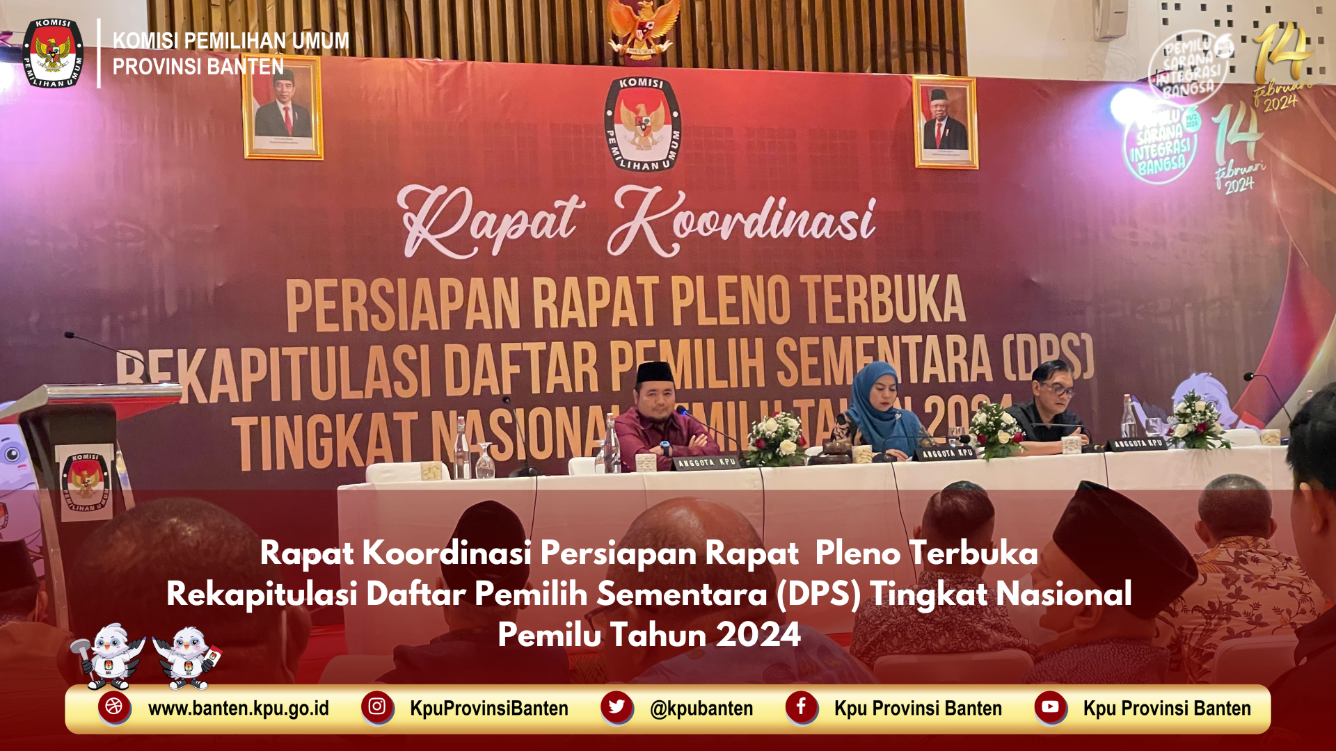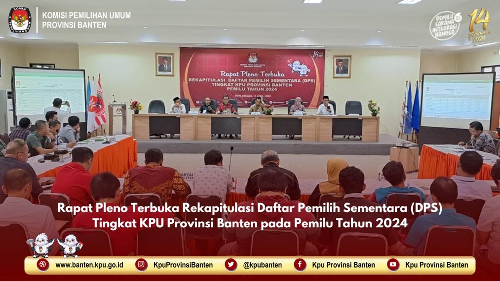 Pada hari Kamis tanggal 13 April 2023 bertempat di Aula KPU Provinsi Banten, Komisi Pemilihan Umum Provinsi Banten menggelar Rapat Pleno Terbuka Rekapitulasi Daftar Pemilih Sementara (DPS) Tingkat KPU Provinsi Banten pada Pemilu 2024.