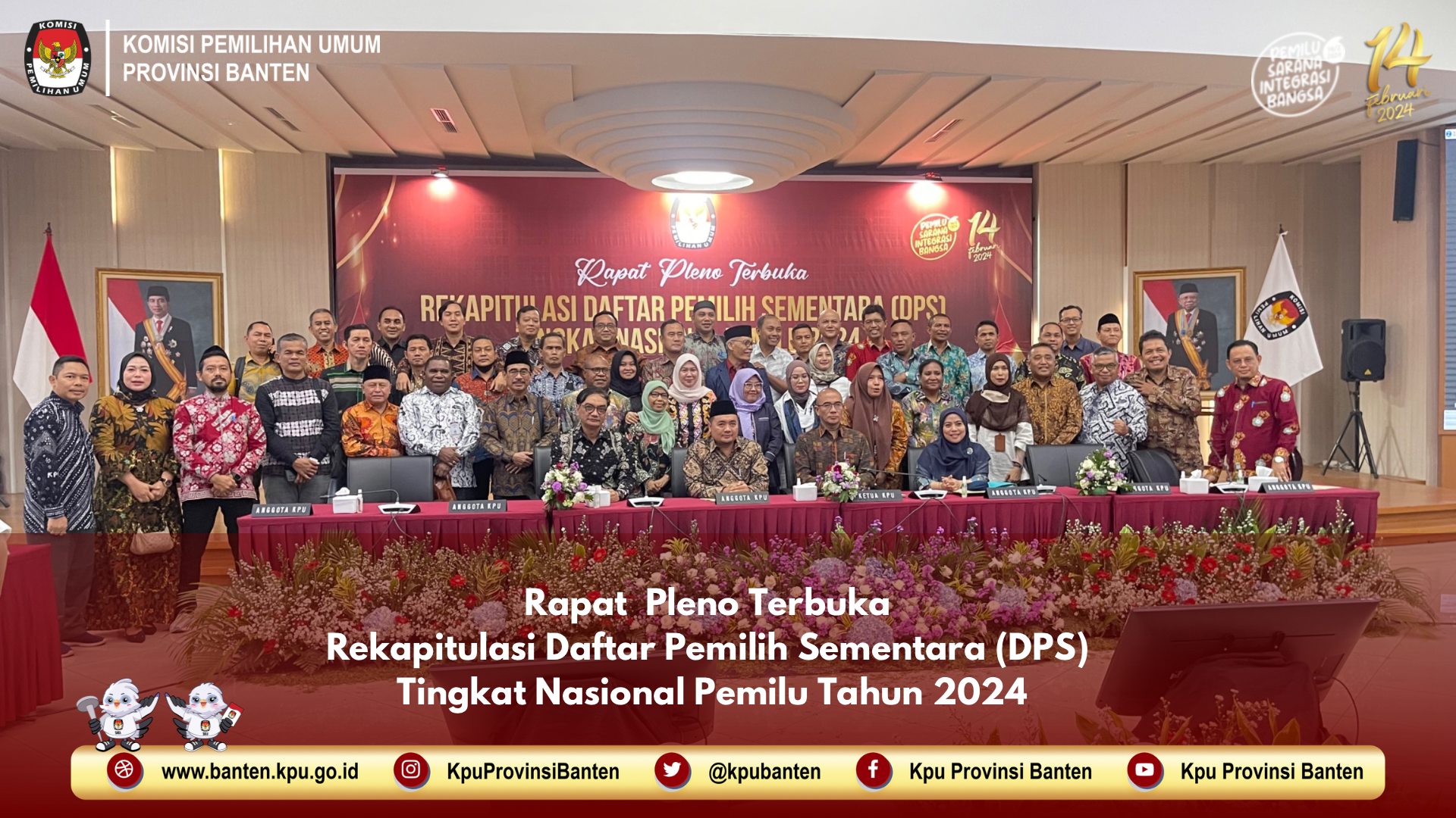 Setelah tidak ada tanggapan dari peserta rapat pleno Ketua KPU Provinsi Banten kemudian menetapkan Rekapitulasi Daftar Pemilih Sementara (DPS) Tingkat KPU provinsi Banten pada Pemilu 2024. Tercatat di 8 kabupaten/kota, 155 kecamatan, 1552 desa kelurahan, 33.311 TPS, Pemilih Laki-laki berjumlah 4.482.933 pemilih, pemilih perempuan berjumlah 4.401.755 pemilih dan total Daftar Pemilih Sementara tingkat Provinsi Banten berjumlah 8.884.688 pemilih.