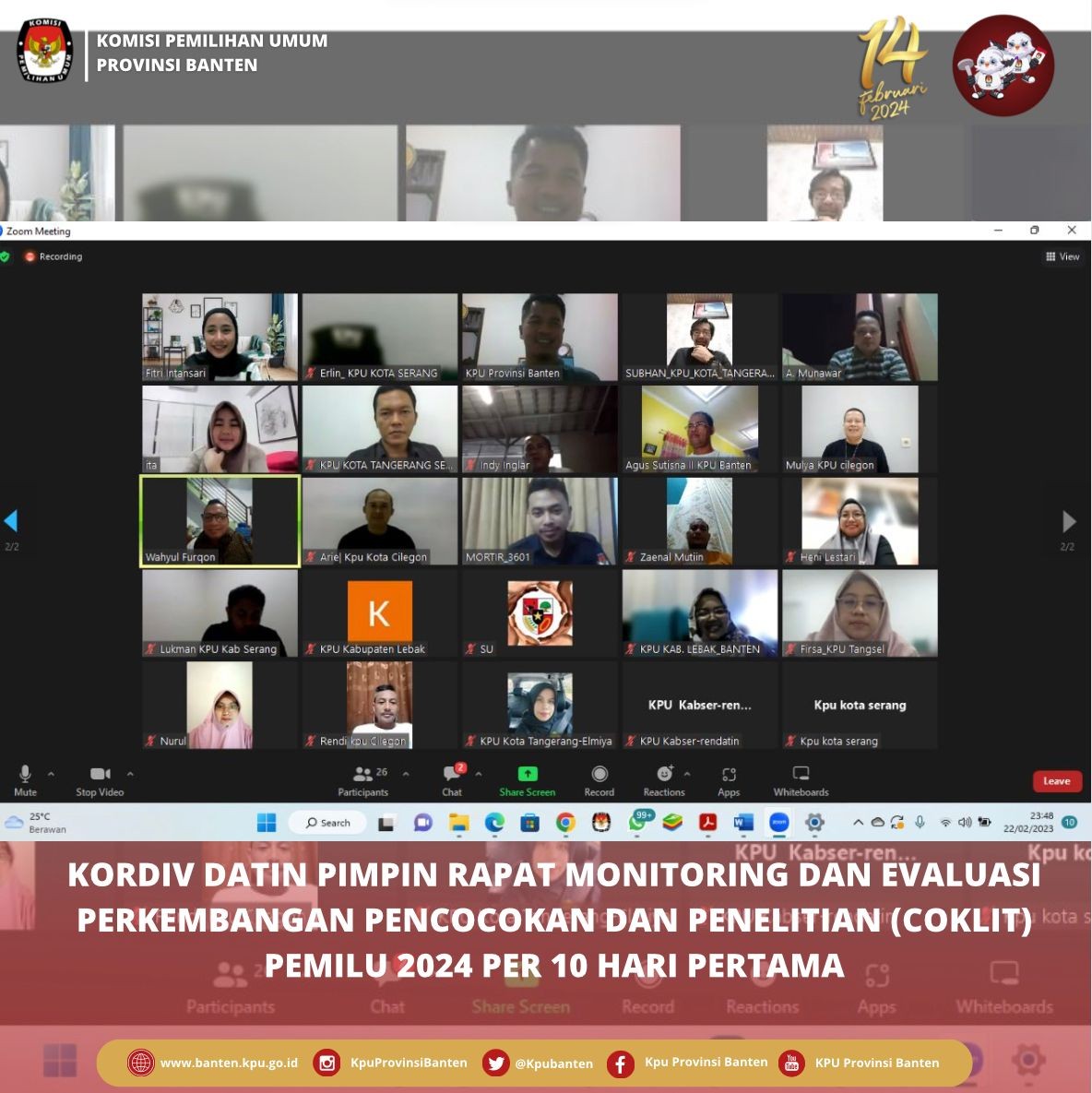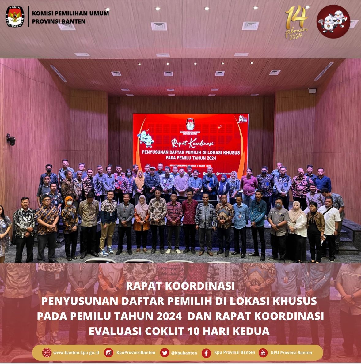 KPU Provinsi Banten laksanakan Kegiatan Rapat Koordinasi Penyusunan Daftar Pemilih Di Lokasi Khusus Pada Pernilu Tahun 2024 dan Rapat Koordinasi Evaluasi Coklit 10 Hari Kedua