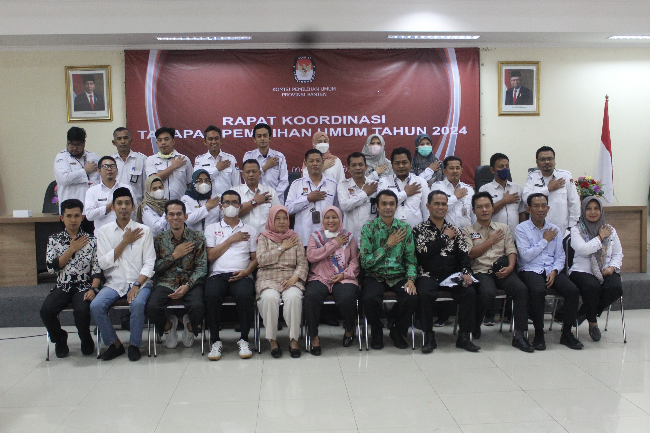 KPU BANTEN – Pada hari ini KPU Banten menyelenggarakan kegiatan Rapat Koordinasi Pembahasan Keputusan KPU Nomor 260 Tahun 2022 secara luring yang bertempat di Aula KPU Provinsi Banten. Adapun selaku peserta pada kegiatan ini adalah KPU Kabupaten/Kota se-Provinsi Banten yang diwakili Anggota KPU Divisi Teknis Penyelenggaraan, Kepala Sub Bagian Teknis Penyelenggaraan Pemilu, Patrisipasi, dan Hubungan Masyarakat, dan Operator Sipol. Tampak hadir dari KPU Provinsi Banten Ketua dan jajaran Anggota KPU Provinsi Banten, Sekretaris KPU Provinsi Banten, Kepala Bagian dan Kepala Sub Bagian beserta Staf Pelaksana KPU Provinsi Banten. Adapun tujuan diadakannya kegiatan ini adalah untuk memperdalam pemahaman terhadap Keputusan KPU Nomor 260 Tahun 2022 dan untuk mempersiapkan KPU Kabupaten/Kota dalam melaksanakan Tahapan Verifikasi Administrasi. Wahyul Furqon, Ketua KPU Provinsi Banten menyatakan kegiatan hari ini adalah pendalaman keputusan KPU nomor 260 tahun 2022 yang sampai hari ini sudah 17 Partai Politik yang sudah lengkap dan dalam hitungan hari akan diturunkan datanya untuk dilakukan verifikasi administrasi. "Perlu bagi kita untuk mendalami juknis yang sudah ada sehingga tidak ada keraguan dalam melaksanakan tahapan verifikasi administrasi. Selain itu penting untuk menyamakan persepsi terhadap Keputusan KPU Nomor 260 Tahun 2022", ucap Ketua KPU Provinsi Banten. Masudi menyatakan sebagaimana telah disampaikan ketua sampai kemarin sudah ada 17 Partai Politik dari 22 Partai Politik yang mendaftar telah dinyatakan berkasmnya lengkap dan telah diterbitkan Berita Acara. "Jika dilihat dari 22 Partai ini masih ada partai yang akan mendaftar lagi beberapa hari kedepan. Saya yakin untuk KPU Kabupaten/Kota sudah melakukan beberapa kegiatan terkait simulasi penggunaan Sipol. Ketika data diturunkan kekhawatiran kita adalah terkait data yang tidak dabat dibaca ataupun permasalahan jaringan ketika menghadapi verifikasi administrasi", ungkap Anggota KPU Provinsi Banten.