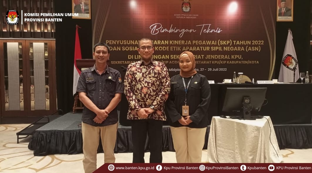 Pada hari ini, Rabu 27 juli 2022 bertempat di Hotel Ayana Midplaza Jakarta, KPU Banten hadir sebagai peserta Bimbingan Teknis Sasaran Kinerja Pegawai (SKP) Tahun 2022 Dan Sosialisasi Kode Etik Aparatur Sipil Negara (ASN) Di Lingkungan Sekretariat Jenderal KPU, Sekretariat KPU Provinsi/KIP Aceh Dan Sekretariat KPU/KIP Kabupaten/Kota. Tampak hadir Ketua KPU RI Hasyim Asy'ari, Anggota KPU RI Divisi SDM, Organisasi, Pendidikan, Pelatihan, Penelitian, dan Pengembangan Parsadaan Harahap yang hadir secara daring, Anggota KPU Divisi Perencanaan, Keuangan, Umum, Rumah Tangga dan Logistik Yulianto Sudrajat, Deputi Bidang Administrasi Purwoto Ruslan Hidayat, Deputi Bidang Dukungan Teknis Eberta Kawima, Inspektur Utama Nanang Priyatna, Kepala Biro SDM Wahyu Yudi Wijayanti, Kepala Pusat Pelatihan, Penelitian, dan Pengembangan Lucky Firnandy Majanto serta Inspektur Wilayah I Novy Hashby Munawwar dan Inspektur Wilayah II Adiwijaya Bakti. Sebagai perwakilan KPU Banten hadir Kepala Sub Bagian SDM dan operator SKP. Turut menyampaikan laporan oleh Kepala Biro SDM Wahyu Yudi Wijayanti yang dalam laporannya menyampaikan dasar kegiatan bimbingan teknis ini adalah Undang-Undang Nomor 5 Tahun 2014 Tentang Aparatur Sipil Negara, Undang-Undang Nomor 7 Tahun 2017 Tentang Pemilihan Umum, Peraturan Pemerintah nomor 17 Tahun 2020 tentang Perubahan Peraturan Pemerintah Nomor 11 Tahun 2017 Tentang Manajemen Pegawai Negeri Sipil, Peraturan Menteri Pendayagunaan Aparatur Negara dan Reformasi Birokrasi nomor 6 Tahun 2022 tentang Pengelolaan Kinerja Aparatur Sipil Negara. Tujuan dari dilaksanakannya kegiatan ini adalah memberikan pemahaman tentang cara Penyusunan Sasaran Kinerja Pegawai serta memberikan pemahaman tentang Kode Etik ASN. Acara dibuka oleh Ketua KPU Hasyim Asy’ari yang dalam sambutannya menyampaikan bahwa perumusan SKP yang benar menjadi salah satu cara untuk mengukur kinerja ASN agar dapat mencapai target kelembagaan yang tertuang dalam Rencana Strategis KPU. Pengarahan oleh Anggota KPU RI Divisi SDM, Organisasi, Pendidikan, Pelatihan, Penelitian, dan Pengembangan Parsadaan Harahap yang hadir secara daring menyampaikan bahwa kegiatan Bimbingan Teknis ini merupakan sesuatu yang sangat penting untuk mendefinisikan tugas dan fungsi KPU sehingga kita dapat mempertanggungjawabkan tugas kita sebagai sebuah lembaga. Ia juga berpesan kepada seluruh ASN bahwasanya harus ada sinergi antara Komisioner dan Kesekretariatan sehingga SDM menjadi harapan dan nafas dalam menjalankan aktivitas kelembagaan. Hal senada juga disampaikan oleh Anggota KPU Divisi Perencanaan, Keuangan, Umum, Rumah Tangga dan Logistik Yulianto Sudrajat yang juga merupakan Wakil Divisi SDM, Organisasi, Pendidikan, Pelatihan, Penelitian, dan Pengembangan yang berpesan bahwa Komisioner dan Sekretariat adalah satu kesatuan sehingga harus dibuat kesatuan pandangan dalam mensukseskan Pemilu. Output dari kegiatan ini adalah terciptanya Lembaga KPU yang menjadi lebih kuat dan kokoh dalam menjalankan tugas KPU.