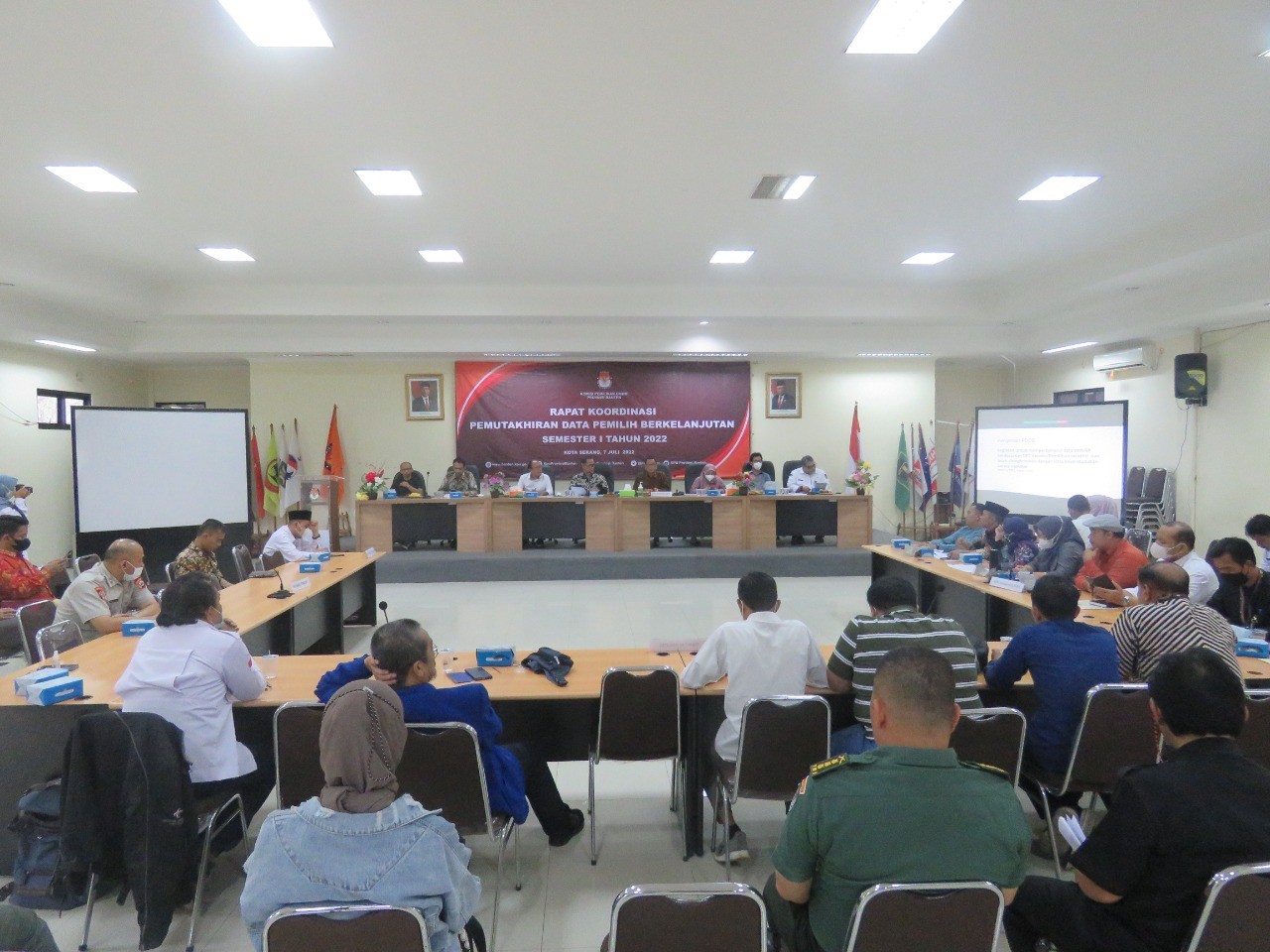 KPU BANTEN - Komisi Pemilihan Umum Provinsi Banten pada hari Kamis tanggal 7 Juli 2022 mengadakan kegiatan Rapat Koordinasi Pemutakhiran Data Pemilih Berkelanjutan Semester I Tahun 2022 berdasarkan Surat Ketua KPU Provinsi Banten Nomor 121/PL.01.2-Und/3.2/2022 tanggal 5 Juli 2022 Perihal Undangan Kegiatan. Hadir dalam acara tersebut, Ketua dan Anggota KPU Provinsi Banten, Betty Epsilon Idroos Koordinator Divisi Data dan Informasi KPU Republik Indonesia melalui media Zoom Cloud Meeting, Ketua Bawaslu Provinsi Banten, KPU Kabupaten/Kota se-Provinsi Banten, perwakilan Kepolisian Daerah Banten, perwakilan Komando Resor Militer 064/Maulana Yusuf, Pengadilan Tinggi Agama Provinsi Banten, Dinas Pemberdayaan Perempuan, Perlindungan Anak, Kependudukan dan Keluarga Berencana (DP3AKKB) Provinsi Banten, Kementrian Hukum dan HAM wilayah Provinsi Banten, Badan Inteljen Negara Daerah Banten, Badan Kesatuan Bangsa dan Politik Provinsi Banten, Dinas Pendidikan Provinsi Banten, Partai Kebangkitan Bangsa (PKB) Provinsi Banten, Partai Gerakan Indonesia Raya (GERINDRA) Provinsi Banten, Partai Demokrasi Indonesia Perjuangan (PDI – Perjuangan) Provinsi Banten, Partai Golongan Karya (GOLKAR) Provinsi Banten, Partai Berkarya Provinsi Banten, Partai Keadilan Sejahtera (PKS) Provinsi Banten, Partai Solidaritas Indonesia (PSI) Provinsi Banten, Partai Amanat Nasional (PAN) Provinsi Banten, Partai Hati Nurani Rakyat (HANURA) Provinsi Banten, Partai Demokrat Provinsi Banten, Partai Bulan Bintang (PBB) Provinsi Banten. Ketua KPU Provinsi Banten Wahyul Furqon memberikan sambutan sekaligus membuka acara kegiatan dengan menyampaikan bahwa dasar hukum kegiatan ini yaitu berdasarkan Undang-Undang Nomor 7 Tahun 2017 tentang Pemilihan Umum, Peraturan Komisi Pemilihan Umum Nomor 6 Tahun 2021 tentang Pemutakhiran Data Pemilih Berkelanjutan. “Pengertian Pemutakhiran Data Pemilih Berkelanjutan berdasarkan ketentuan Pasal 1 ayat (15) Peraturan Komisi Pemilihan Umum Nomor 6 Tahun 2021 tentang Pemutakhiran Data Pemilih Berkelanjutan adalah Kegiatan untuk memperbaharui data pemilih berdasarkan DPT Pemilu/Pemilihan terakhir dan telah disingkronkan dengan data kependudukan secara nasional”, ungkap Wahyul Furqon. Wahyul menambahkan, tujuan diadakannya Pemutakhiran Data Pemilih Berkelanjutan berdasarkan ketentuan Pasal 3 Peraturan Komisi Pemilihan Umum Nomor 6 Tahun 2021 tentang Pemutakhiran Data Pemilih Berkelanjutan yaitu : a. Memelihara, memperbaharui, dan mengevaluasi DPT Pemilu/Pemilihan terakhir secara terus menerus dan berkelanjutan yg digunakan utk penyusunan DPT Pemilu/Pemilihan berikutnya, b. Menyediakan data dan informasi pemilih berskala nasional dan daerah mengenai data pemilih secara komprehensif, akurat dan mutakhir, c. Memutakhirkan data pemilih dengan menggunakan teknologi informasi dengan tetap menjamin kerahasiaan data. Ketua KPU Provinsi Banten juga menyampaikan bahwa dalam setiap kegiatan rakor ingin menghadirkan stakeholder/pemangku kepentingan karena pemutakhiran data pemilih terkait persoalan data pemilih ini persoalan yang tidak mudah. Dalam setiap Rakor saya berpesan untuk Pimpinan Partai Politik tingkat provinsi agar mendorong para pimpinan Partai Politik tingkat Kabupaten/Kota untuk hadir berpartisipasi aktif pada kegiatan yang diadakan KPU Kabupaten/Kota. Anggota KPU RI Betty Epsilon Idroos, dalam arahannya melalui Zoom Cloud Meeting mengatakan terkait dengan DPT berkelanjutan ini sebagai upaya KPU untuk upgrade atau memperbaharui DPT terakhir pada pilkada 2020 dan data pemilih pemilu 2019 yang lalu. “Prinsip pemutakhiran data pemilih berkelanjutan yaitu Komprehensif, Inklusif, Akurat, Mutakhir, Terbuka, Responsive, Partisipatif, Akuntabilitas, Perlindungan data pribadi”, jelas Betty Epsilon Idroos. Betty Epsilon Idroos menambahkan tujuan PDPB yaitu mewujudkan Pemilihan berikutnya, pemanfaatan Data Pemilih dengan menggunakan teknologi informasi dan tetap menjamin kerahasiaan data, Menyediakan Data dan Informasi Pemilih berskala nasional dan daerah mengenai data Pemilih secara Komprehensif, akurat, mutakhir dan Memelihara, memperbaharui dan mengevaluasi DPT Pemilu atau Pemilihan terakhir secara terus menerus untuk penyusunan DPT pada Pemilu dan/atau mewujudkan Pemilihan berikutnya. “Pada Data Pemilih Banten pada Pemilu 2019 dengan total Pemilih sejumlah 8.112.477, pada DPB semester II tahun 2021 dengan total pemilih sejumlah 8.179.547 dan DPB Mei 2022 dengan total pemilih sejumlah 8.185.060”, ungkap Betty. Lebih lanjut Betty menyampaikan bahwa rekap data pemilih di Banten pada 8 kabupaten/kota pada DP4 Pemilu 2019 total 7.817.015, DPT Pemilu 2019 total 8.112.477, DPB Semester II Tahun 2021 total 8.179.547, DPB Mei 2022 total 8.185.060, perbandingan DP4 Pemilu 2019 dan DPB Mei 2022 total 368.045 atau dalam prosentase 4.71%, perbandingan DPT Pemilu 2019 dan DPB Mei 2022 total 72.583 dalam prosentase 0.89%, dan Perbandingan DPB Semester II 2021 dan DPB Mei 2022 total 5.513 dalam prosentase 0.07%, data ini bersifat dinamis dalam arti terjadi perubahan. Di Provinsi Banten data pemilih DPB Semester II Tahun 2021 sejumlah 8.179.547 dengan total padan sejumlah 7.579.774 dengan prosentase 95.70 % dengan data anomali 21, NIK ganda 72.316, Ganda Elemen 85.025, Padan Status Meninggal 97.617, Tidak Padan 344.794 dengan total keseluruhan 599.773. Betty Epsilon Idroos berharap kepada tingkatan KPU Provinsi, KPU Kabupaten/Kota adanya masukan dan tanggapan dari masyarakat terutama yang menjadi undangan peserta kegiatan di Banten ini dengan mengecek Kembali data pemilih yang belum masuk agar dapat diproses sebagai data pemilih yang presisi yang akan ditetapkan. Diakhir paparannya, Betty Epsiln Idroos berharap teman-teman di KPU Provinsi dan KPU Kabupaten/kota di Banten sudah menindaklanjuti Surat Edaran Nomor 17 Tahun 2022. Koordinator Divisi Data dan Informasi H. Agus Sutisna menyampaikan Hasil Berita Acara Nomor 034/03.1-BA/36/Prov/VII/2022 tentang Rapat Koordinasi Daftar Pemilih Berkelanjutan Periode Semester I