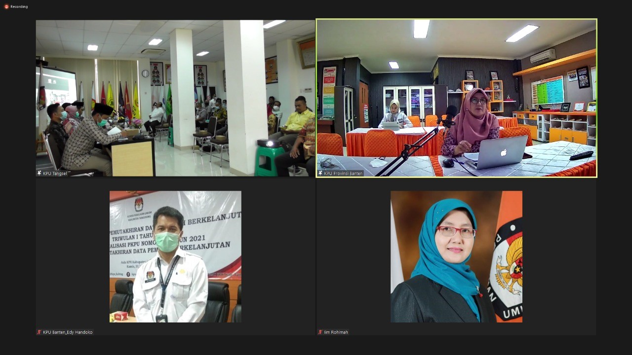 Turut hadir secara daring melalui Zoom Cloud Meeting Hj. Rohimah selaku Anggota KPU Provinsi Banten Divisi SDM dan Litbang, dalam arahannya menyampaikan mengenai prinsip PDPB.
