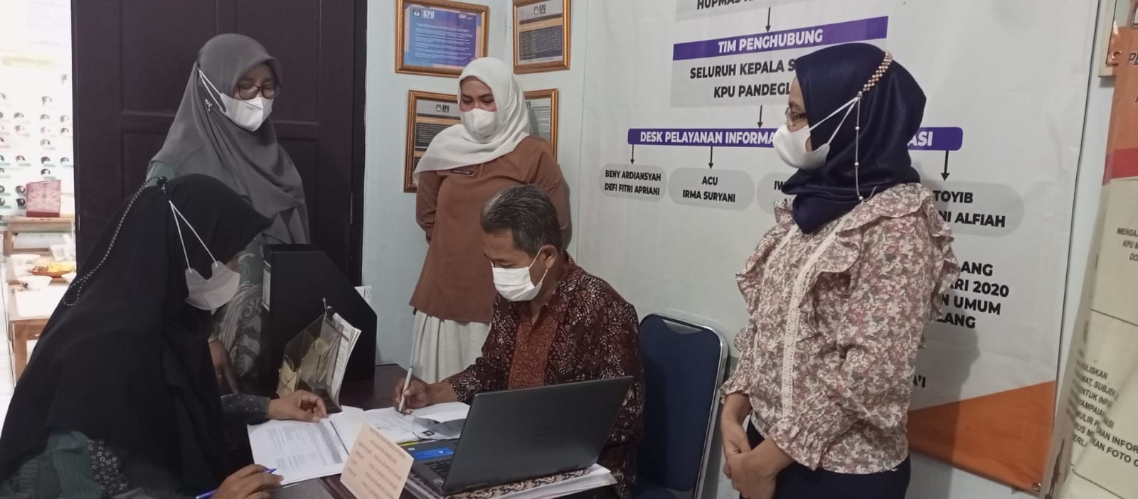 Hujan deras yang mengguyur Kota Serang pada hari Jumat siang (17/12) membuat sebagian kantor KPU Kabupaten Serang sempat dilanda banjir. Namun beruntungnya untuk ruangan PPID KPU Kabupaten Serang karena lantainya lebih tinggi maka ruangan PPID tidak kebanjiran sehingga tim visitasi KPU Banten masih bisa melanjutkan kegiatan visitasi dan verifikasi dokumen PPID. Tim visitasi badan publik KPU Provinsi Banten yang dipimpin oleh Nurkhayat Santosa selaku Anggota KPU Provinsi Banten serta staf pelaksana diterima langsung oleh Ketua KPU Kabupaten Serang Abidin Nasyar, didampingi Anggota KPU Kabupaten Serang serta Kasubbag Teknis dan Hupmas dan staf pelaksana. Setelah menyampaikan maksud dan tujuan, tim visitasi KPU Banten memeriksa dokumen hard copy serta sarana prasarana PPID KPU Kabupaten Serang. Dokumen-dokumen seperti SK dan Struktur PPID, formulir, buku register dan SOP pelayanan informasi diminta ditunjukkan kepada tim visitasi. Sarana Prasarana PPID juga tak luput diperiksa oleh tim visitasi KPU Provinsi Banten, antara lain meja dan kursi tunggu, maklumat pelayanan informasi, kotak saran dan kotak kepuasan, serta perangkat komputer yang ada diruangan PPID KPU kabupaten Serang.. Diakhir kegiatan visitasi, Nurkhayat Santosa menekankan kepada PPID KPU Kabupaten Serang untuk selalu melakukan koordinasi antar sub bagian sebagai upaya pemenuhan data PPID KPU Kabupaten Serang. “Jangan lupa untuk rutin memeriksa permohonan informasi yang masuk, baik melalui E PPID maupun email, karena permohonan informasi harus dijawab maksimal sepuluh hari kerja”, pesan Nurkhayat Santosa dipenghujung kegiatan visitasi badan publik.