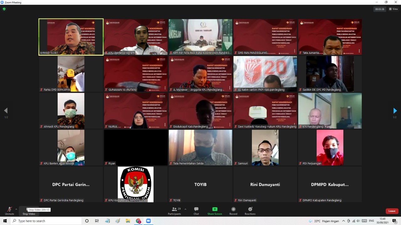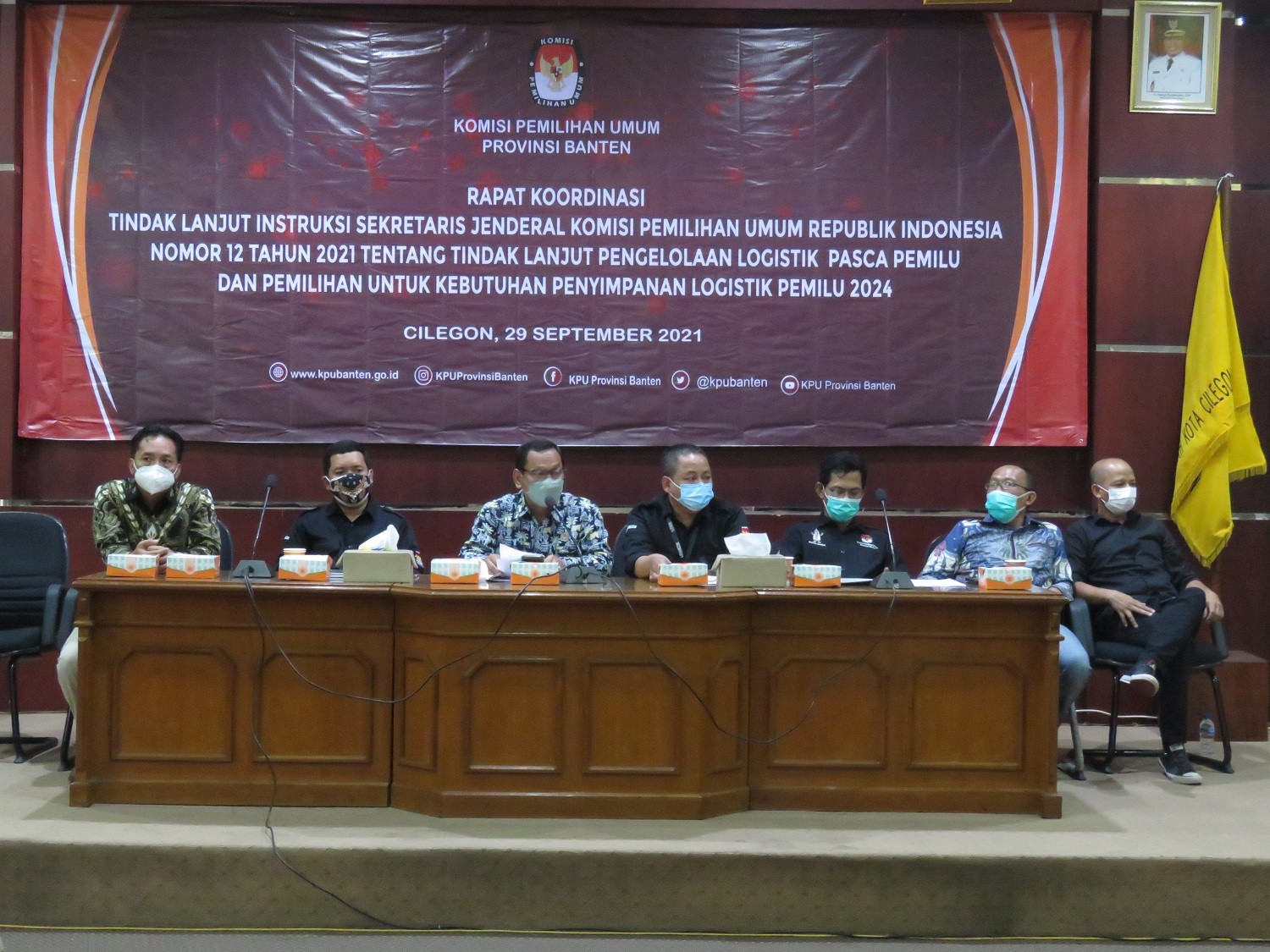 Sebagai salah satu upaya untuk tata kelola logistik menghadapi Pemilu dan Pemilihan 2024, KPU Provinsi Banten menggelar Rapat Koordinasi Tindak Lanjut Instruksi Sekretaris Jenderal Komisi Pemilihan Umum Republik Indonesia Nomor 12 Tahun 2021 Tentang Tindak Lanjut Pengelolaan Logistik Pasca Pemilu dan Pemilihan Untuk Kebutuhan Penyimpanan Logistik Pemilu 2024 bertempat di Ruang Rapat Setda Kota Cilegon, Rabu (29/9).