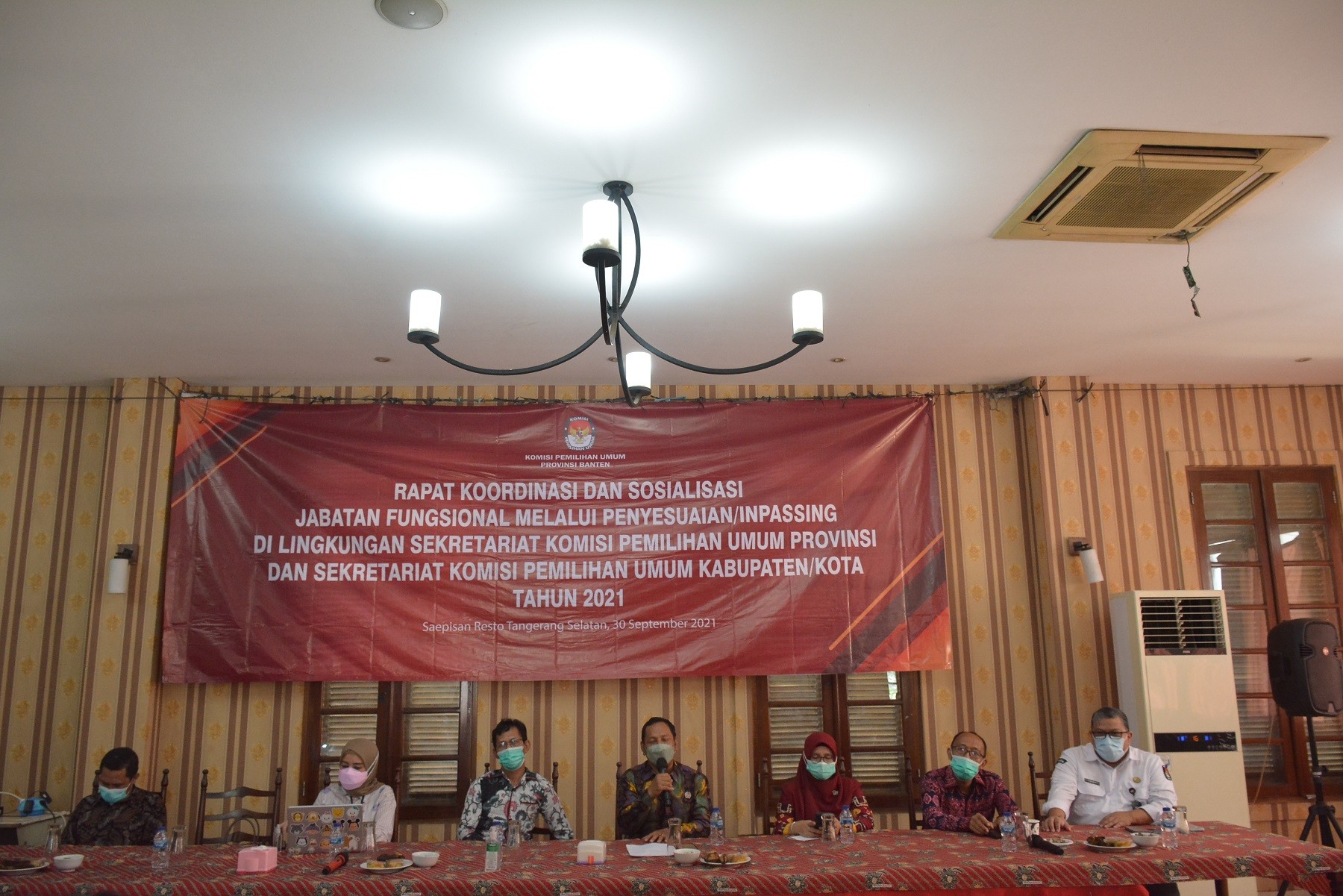 Tampak hadir Ketua, Anggota dan Sekretaris KPU Provinsi Banten beserta Para Kabag dan Kasubbag serta Ketua KPU kabupaten/kota beserta Kasubbag Keuangan Umum dan Logistik.