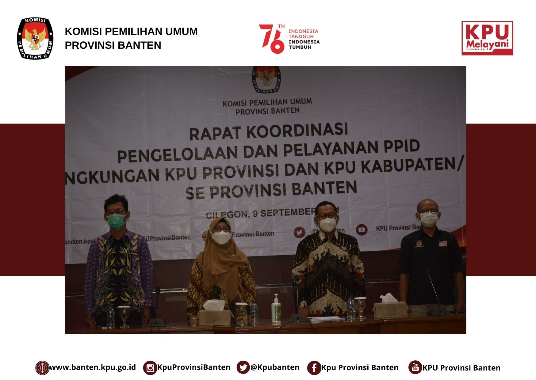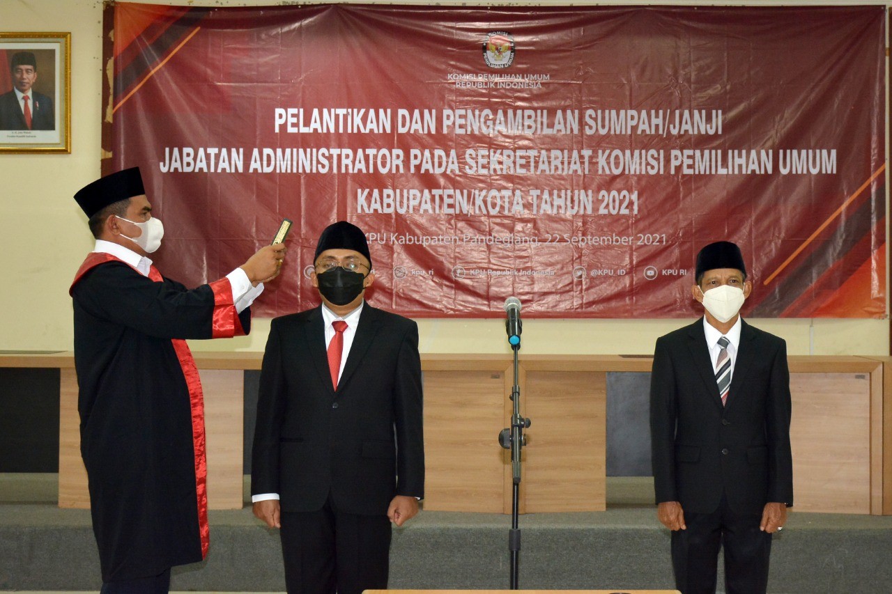 Pada hari ini, Rabu 22 September 2021, pukul 14.00 WIB, KPU Republik Indonesia mengadakan Pelantikan Pejabat Administrator pada Sekretariat KPU Kab/Kota secara virtual serentak se-Indonesia. KPU Provinsi Banten turut serta mengikuti kegiatan pelantikan pejabat administrator di wilayah provinsi Banten bertempat di Aula KPU Provinsi Banten. Pelantikan dan pengambilan sumpah janji dilakukan kepada Mohammad Rukbi, SE, MM sebagai Sekretaris KPU Kabupaten Lebak dan Hendro Sulistyo, S.Sos, M.Si sebagai Sekretaris KPU Kota Serang. Turut hadir secara langsung di Aula KPU Provinso Banten Ketua, Anggota dan Sekretaris KPU Provinsi Banten, para kabag dan kasubbag di lingkungan KPU Provinsi Banten. Adapun peserta KPU kabupaten/kota se-Provinsi hadir secara virtual melalui zoom meeting. Dalam amanatnya, Bernad Dermawan Sutrisno selaku Sekretaris Jenderal KPU RI menyampaikan bahwa proses seleksi jabatan Sekretaris KPU kabupaten/kota ini sudah sekitar 2 bulan berjalan dengan berpedoman pada aturan Keputusan Sekjen 366. Bernad Dermawan Sutrisno juga menyampaikan ucapan selamat untuk semua yang telah dilantik dan berpesan agar Sekretaris yang baru dilantik agar segera melaporkan diri dan menghadap serta meminta arahan ke Ketua dan Anggota KPU Kabupaten/Kota, karena tugas Sekretariat KPU adalah melakukan pelayanan yang maksimal. Bernad Dermawan Sutrisno juga meminta Sekretaris KPU kabupaten/kota yang baru dilantik untuk mengumpulkan seluruh jajaran sekretariat guna mengidentifikasi persoalan, selain itu juga meminta untuk memahami lagi aturan mengenai penyelenggaraan pemilu. Lebih lanjut Sekretaris Jenderal KPU RI menjelaskan bahwa pegawai KPU dan ASN terikat dalam 2 kode etik, yaitu kode etik penyelenggara Pemilu dan kode etik ASN, jangan sampai tergoda sehingga bisa menjual harga diri dan integritas KPU. Terakhir Bernad Dermawan Sutrisno berharap agar pejabat yang baru dilantik untuk dapat menjalankan tugas dengan baik dalam dukungan pelaksanaan Pemilu dan Pemilihan 2024. Sekjen KPU RI juga menyampaikan ucapkan terima kasih atas penyelenggaraan seleksi terbatas kepada semua pihak yang terlibat karena telah dapat menyelenggarakan seleksi dengan baik dan berintegritas. Kemudian Ilham Saputra, Ketua KPU RI menyampaikan bahwa telah terselenggara pelantikan Sekretaris KPU Kabupaten Kota di 92 sakter, Ketua mengucapkan terima kasih kepada Sekjen KPU RI dan jajaran yang telah menyelenggarakan seleksi jabatan ini dengan baik, dan berharap agar dapat menyelesaikan semua persoalan baik internal dan eksternal. “Hubungan Komisioner dan Sekretaris harus saling kolaboratif, khususnya tugas Sekretaris menjadi supporting system dalam penyelenggaraan pemilu, kemudian perlu adanya fungsi transparansi, apabila ada kendala sampaikan kepada komisoner sehingga tidak ada kecurigaan, kemudian untuk yang belum beruntung kembali luruskan niat Anda, kembali bekerjasama sesuai tugas dan fungsinya”, terang Ilham Saputra. “Untuk Sekretaris yang baru dilantik jika ada inovasi silahkan diterapkan, jangan bawa kebiasaan buruk, buat suasana bahagia dan kondusif, karena sekretaris adalah tauladan maka bekerjalah dengan baik, selain itu, KPU baru saja mendapatkan WTP di 2020, tugas Sekretaris membantu mempertahankan opini WTP dari BPK, lakukan semua dengan baik. Jika mau kaya jangan jadi Sekretaris KPU, tapi jadilah pengusaha, jangan memperkaya diri di KPU. Demikian, saya ucapkan selamat, dan pekerjaan kedepan dalam penyelenggarakan Pemilu dan Pemilihan tahun 2024, mari buat KPU menjadi yang lebih baik”, pungkas Ketua KPU RI.