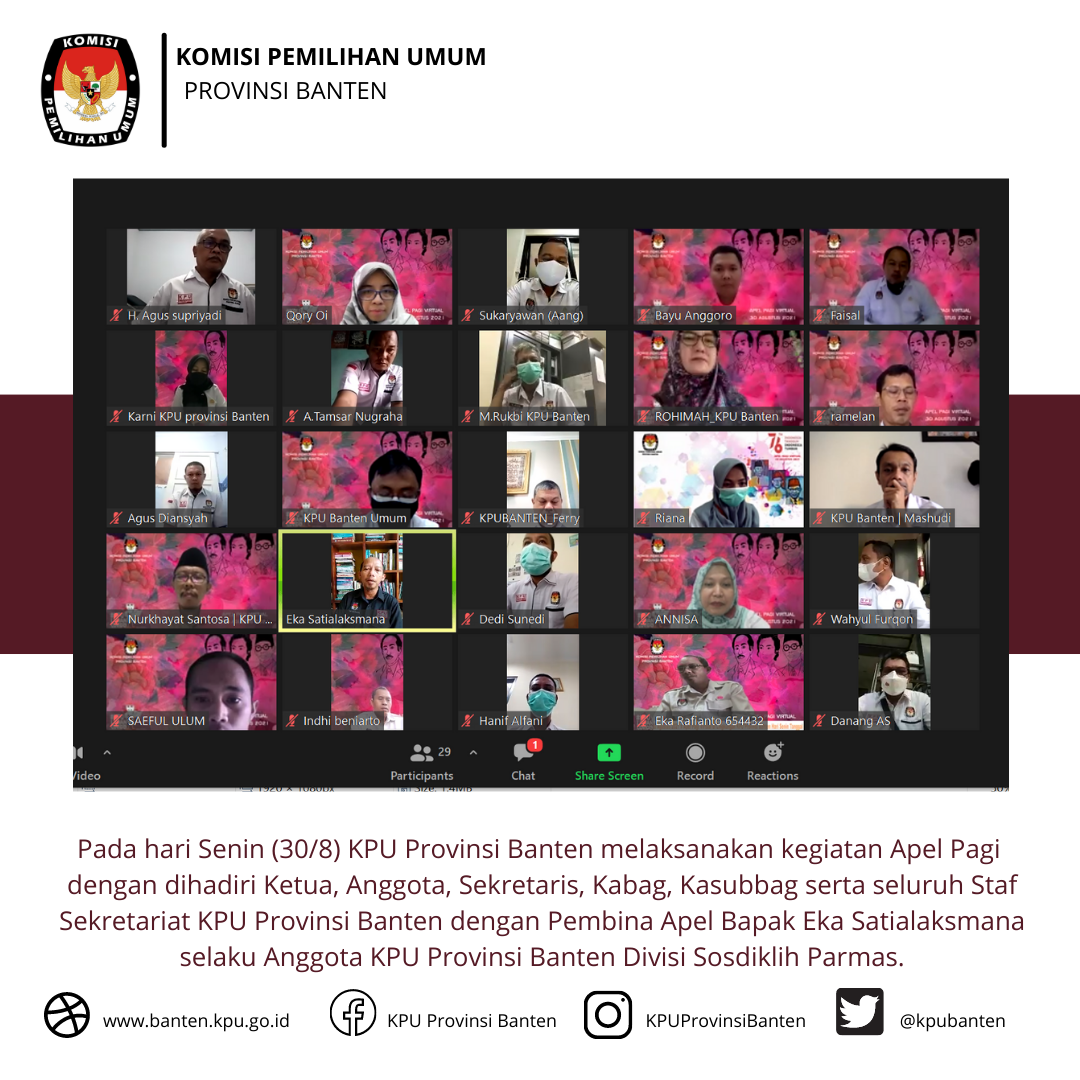 Komisi Pemilihan Umum Provinsi Banten hari ini Senin (16/8) menggelar Rapat Pembahasan Draft/Rancangan Peraturan KPU tentang Pendaftaran, Verifikasi, dan Penetapan Partai Politik Peserta Pemilihan Umum Anggota Dewan Perwakilan Rakyat dan Dewan Perwakilan Rakyat Daerah. Selain dihadiri komisioner dan jajaran Sekretariat KPU Provinsi Banten rapat juga dihadiri Anggota KPU kabupaten/kota Divisi Teknis Penyelenggaraan beserta Kasubbag Teknis dan Hupmas KPU kabupaten/kota se Provinsi Banten.