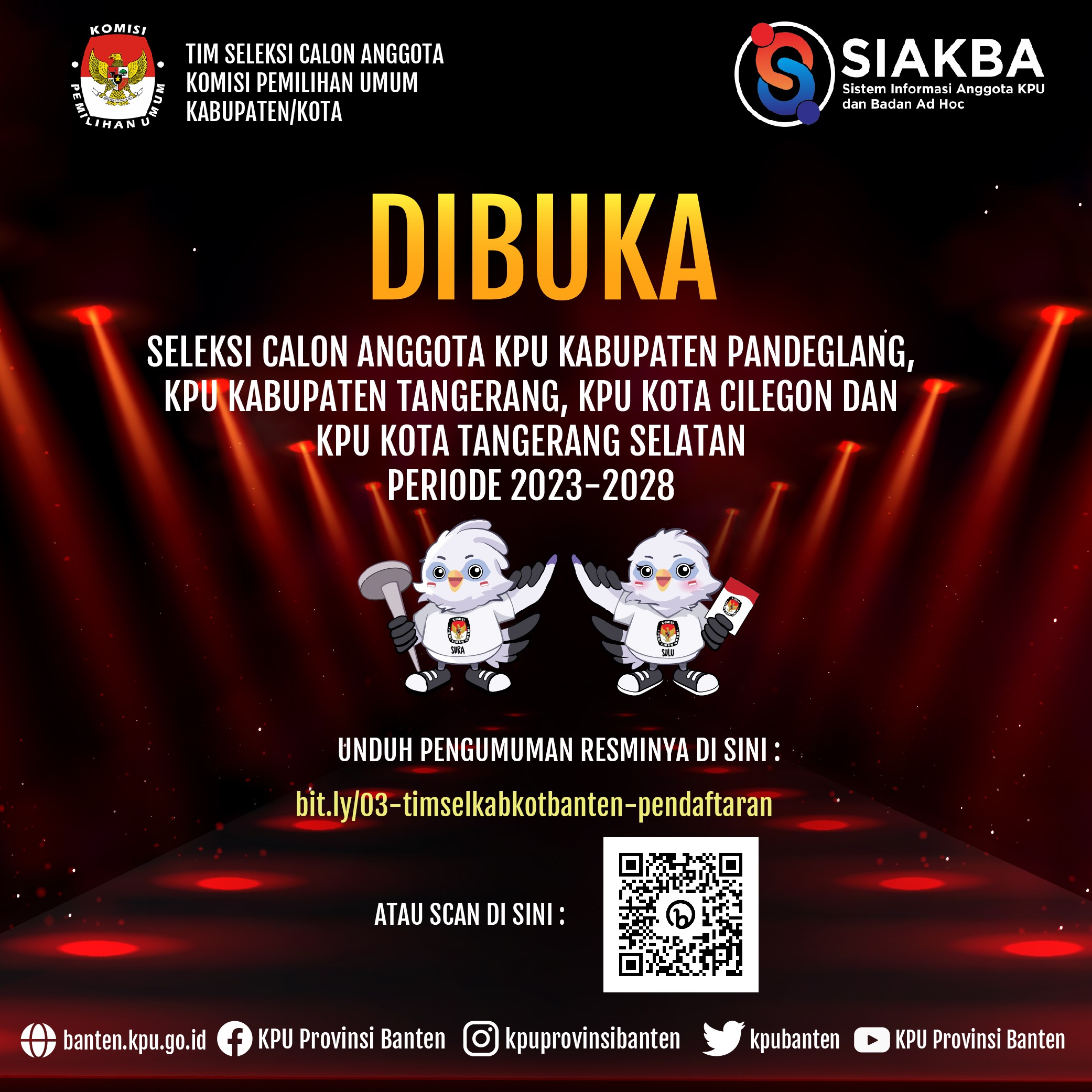 Pengumuman Pendaftaran Calon Anggota KPU Provinsi Banten Periode 2023-2028 Jumat, 10 Februari 2023 21:00 1437 pengumuman unduh disini Baca Selengkapnya